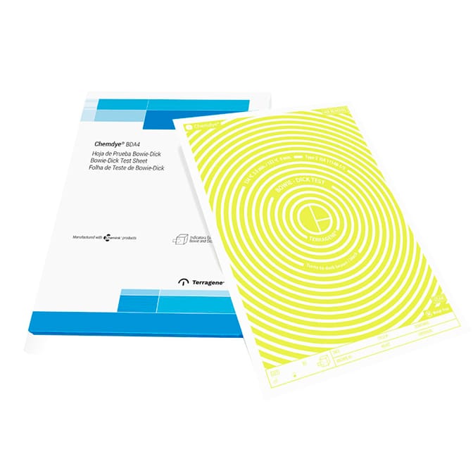 BDA4 / Indicador químico para probar la eficiencia de eliminación de aire de los esterilizadores de vapor asistidos por vacío. 4% sin plomo.